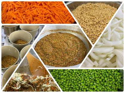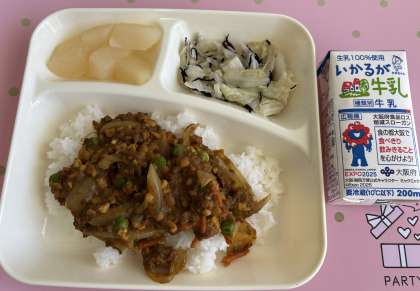 「大豆入りキーマカレーライス」は、牛ひき肉、豚ひき肉、鉄が豊富に含まれている豚レバー(チップ)、大豆(ひきわり)などを使用しています。レバーには血を作るもとになる鉄が多くふくまれています。