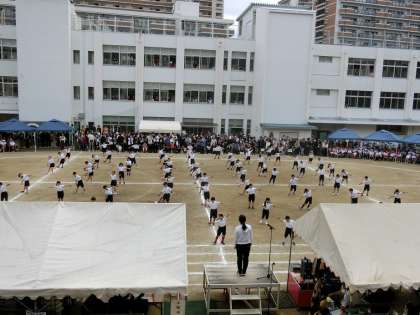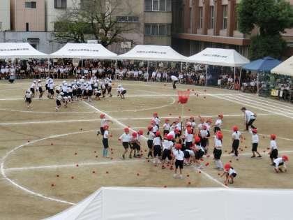1年生は、団体演技「みんないっしょに!「アロハ」と団体競技「ダンシングダンシング!たま入れ」です。