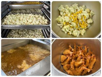 それに、「カリフラワーのピクルス」がつきました。カリフラワーの旬(たくさんとれて、おいしい時期)は、11月から3月ごろです。熊本県、茨城県、愛知県などでたくさん作られています。つぼみの部分を食べる野菜です。