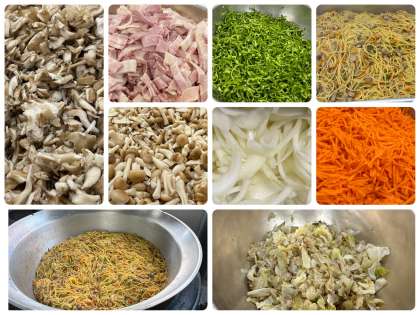 きのこは、おなかの調子を整える働きがある食物繊維や、骨や歯をじょうぶにするために必要なビタミンDなどの栄養素を多くふくんでいます。今日の「ウインナーときのこの和風スパゲッティ」には、しめじとまいたけを使っています。今日も美味しくいただきました。
