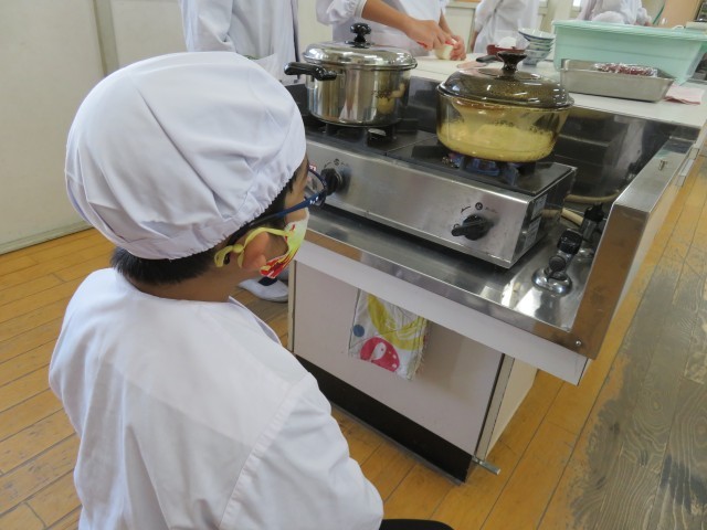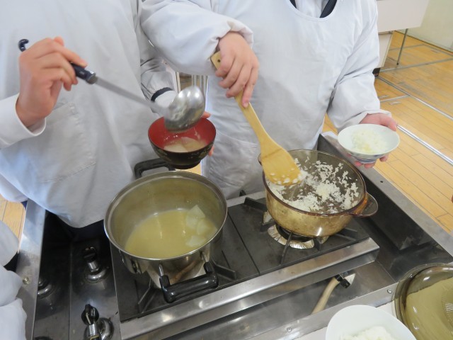 家庭科の学習で「ごはんの炊き方」と「みそ汁の作り方」を学び、今日は調理実習をしました。