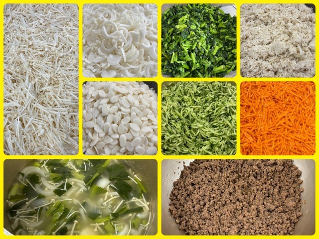 今日のビビンバの具は、コチジャンで味つけした肉と切干しだいこんなどで作ったナムルです。