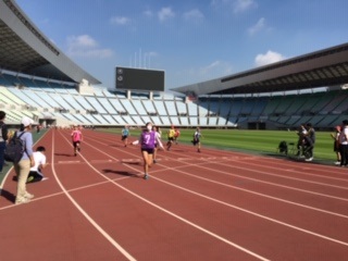 世界大会も行われたこともあるような普段なら入ることのできないヤンマースタジアム長居のトラックで100M走や800M走、リレーを走りました。