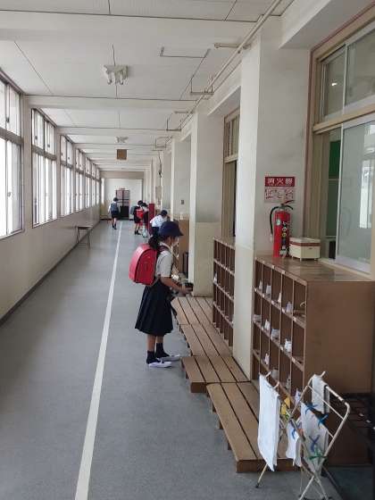 昨日・今日は、久々の登校でした。新しい教室で、新しい担任の先生や友だちと出会いました。学級担任が体調を聞いたり、手洗いを推奨したりしました。