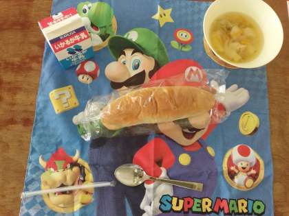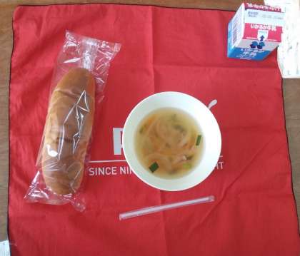 5日の給食は、「おさつパン・牛乳・スープ」でした。