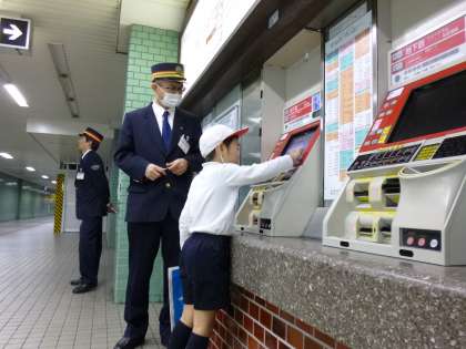 11月28日に天神橋6丁目駅に地下鉄乗車体験に行きました。駅長さんから電車に関するお話をしていただき、自分たちで切符を買い扇町駅まで電車に乗りました。