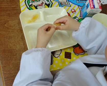 給食では、このような自分で皮をむいて食べる季節の果物も登場します。
