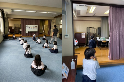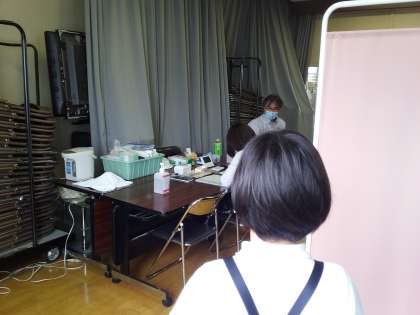 密を避けながら、眼科検診を行いました。ポイントを示し、そこに待機し、自分の番になったら、検診を受けました。みんな静かに待って、検診を受けることができました。