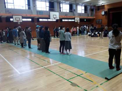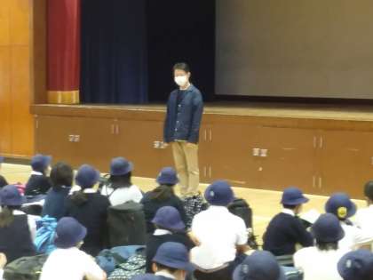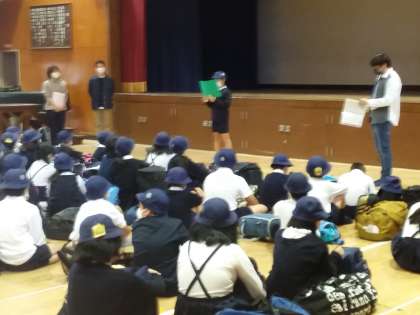 雨のため、急遽講堂で出発式を行いました。須和先生、校長先生のお話の後、児童代表の言葉がありました。