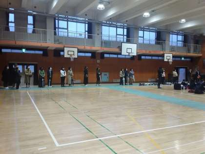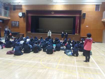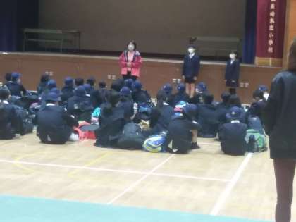 雨のため、急遽講堂で出発式を行いました。校長先生のお話の後、児童代表の言葉がありました。