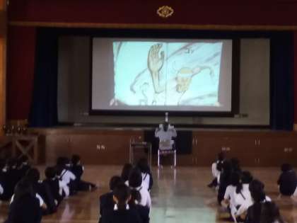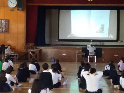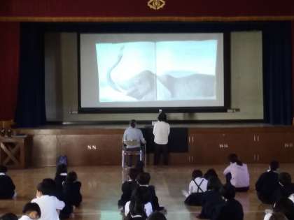 北区読み聞かせボランティア絵本の会の皆さんに3・4年生対象に講堂でしていただきました。
