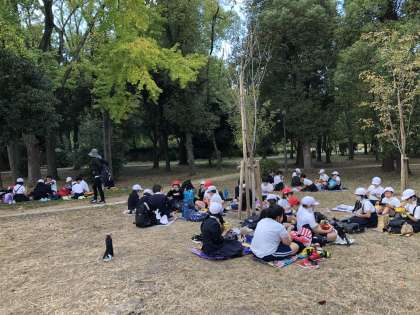 大阪城公園に行きました。行く前に、各班の目当てをみんなで確認してから出発しました。大阪城公園では、秋見つけビンゴをしました。