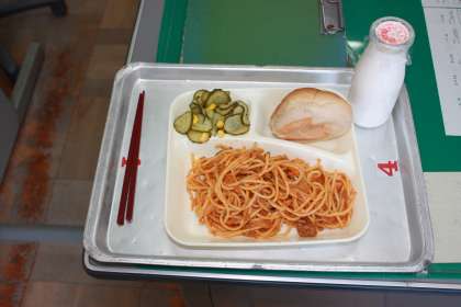 4日(木)の給食はスパゲティーミートソース