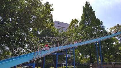 大阪城公園では最初に遊具のある公園で遊びました。一番乗りだったので、たっぷりと遊ぶことができました!