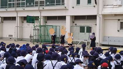 とても大きな「グー」「チョキ」「パー」でわかりやすかったです。集会委員会のみなさんありがとうございました。これからの集会も楽しみですね。