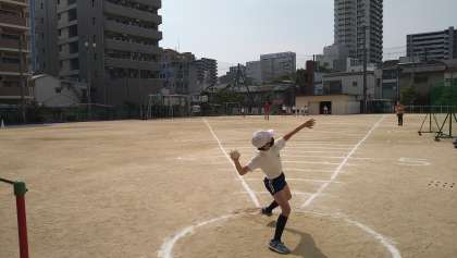 ソフトボールを投げる姿は力強く、さすがは6年生でした。昨年より記録は伸びたでしょうか。