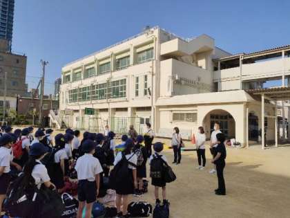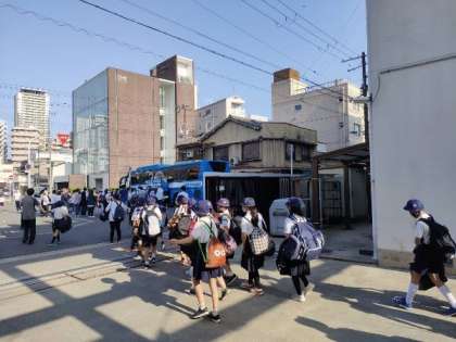 6年生が無事に鳥羽方面に出発しました。早朝にも関わらず、たくさんの家族の方がお見送りをしていただきました。ありがとうございます。