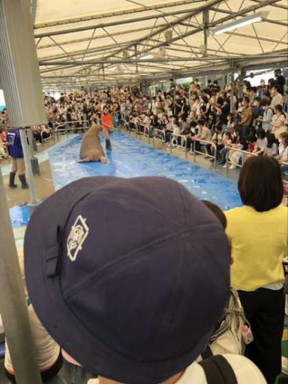 セイウチショーを見学しています。