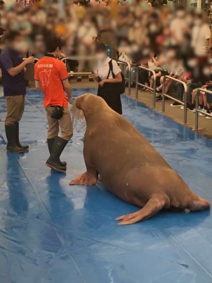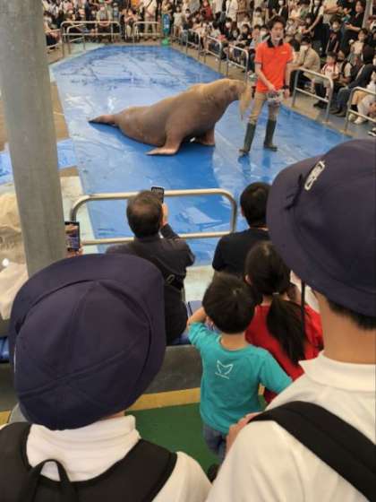 セイウチの生態を紹介してもらったり、ユニークな動きを見たりして楽しんでいます。