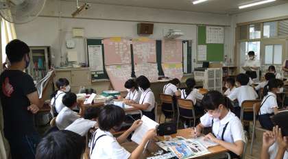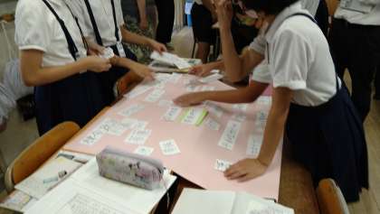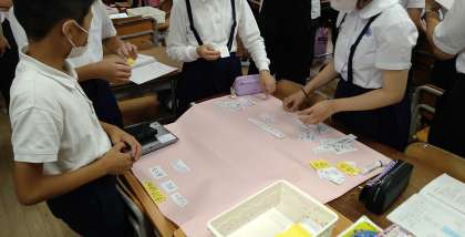 昨日の5時間目に6年2組で社会科の研究授業が行われました。これまでの学習で、奈良時代についての「キーワード」をグループでたくさん探し出し、短冊に書き出しました。
