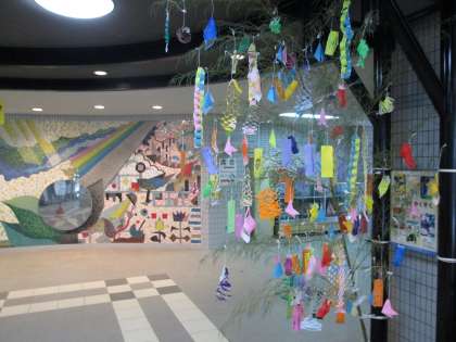 みんな笹にかざりや願い事を書いた短冊をつけました。