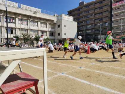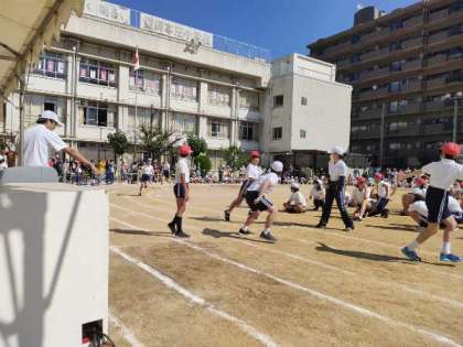 各チーム心を一つにして、協力をしてバトンパスをしていました。流石豊崎本庄小学校の高学年の躍動感あふれる走りでした。