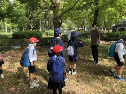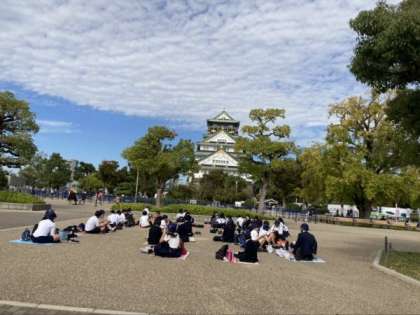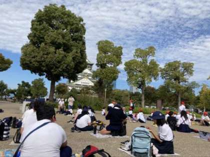 大阪城公園では、3.5年生がチームになり、ミッションを解決しながらゴールを目指しました。その後、お弁当を美味しくいただきました。