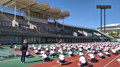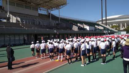 前日の雨天から打って変わって快晴の今日、ヤンマーフィールド長居でスポーツ交歓会が行われました。北区の小学校が多く参加していて、陸上を通じて交流することができました。