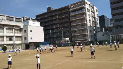 運動場では、休み時間や体育の時間に、気持ちよさそうに体を動かす子どもたちの姿が見られます。