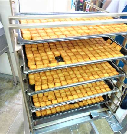 給食に登場するあつあげは、市販のものより小さく厚さも薄めです。