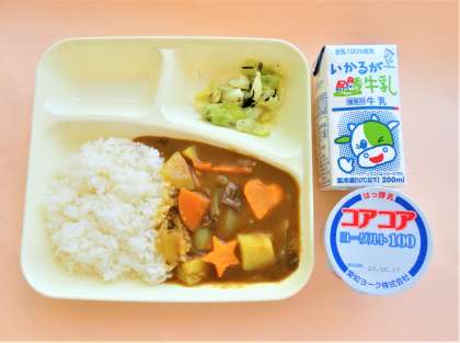 牛肉と大豆のカレーライス・キャベツのひじきドレッシング・ヨーグルト・牛乳