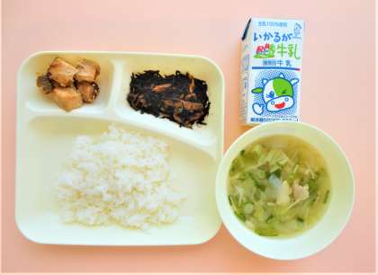 ご飯・牛乳・さけのごまみそ焼き・五目汁・ひじきのいため煮
