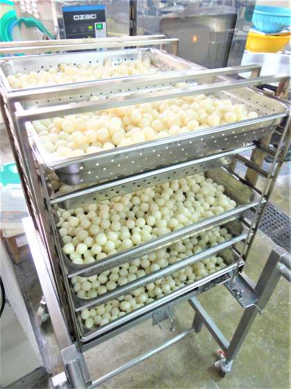 今日のデザートは、白玉団子とたれを合わせた団子に、各々できな粉をかけて食べました。