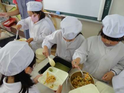 もっちりとしたういろうは、一人ずつに配食するのにコツが必要ですが、2年生は慣れた手つきで手早く配膳していました。