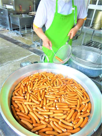 今日の給食には、児童に大人気のウインナーのケチャップソースが出ました。