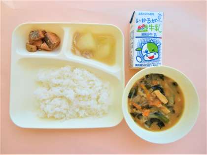 ご飯・牛乳・さけのつけ焼き・みそ汁・とうがんの煮もの