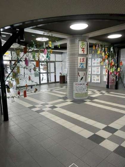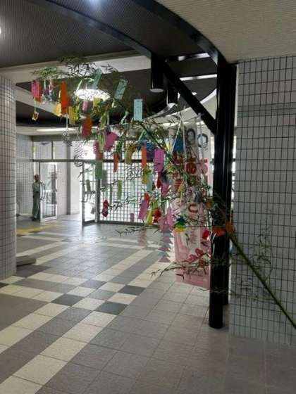 ピロティに1年生の願いのかかった七夕かざりができました。どんな願い事をしたのかな。みんなの願いが叶うといいですね。