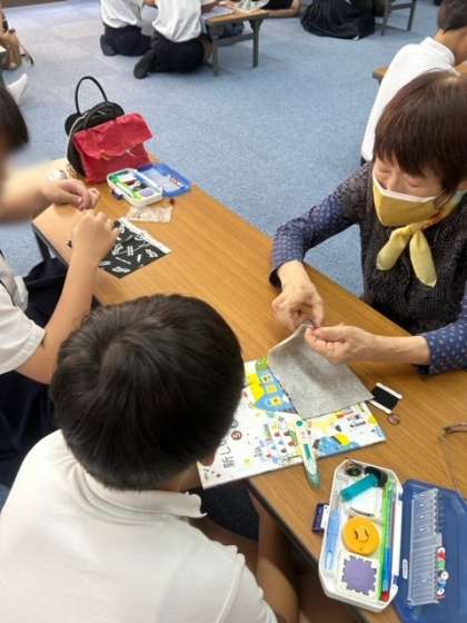 9月5日(火)3.4時間目に、本庄女性会の方々が、ボタンのつけ方を教えに来てくださいました。12名の女性会の方が子どもたちに丁寧に教えてくださいました。まだ手縫いに慣れていない子どもたちは、玉止めなど苦手なこともたくさん教えてもらうことができました。