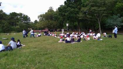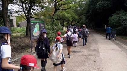 10月4日(水)長居公園に行きました。1年生と6年生のペアで手をつないで移動しました。6年生のお兄さんお姉さんが道の歩き方や電車の乗り方を教えあげていました。長居公園に着いてからは、植物園で秋見つけをしました。お弁当を食べた後は、1年生は長居公園で遊具で遊び、6年生は自然史博物館に行って自然に関する歴史について学ぶことができました。