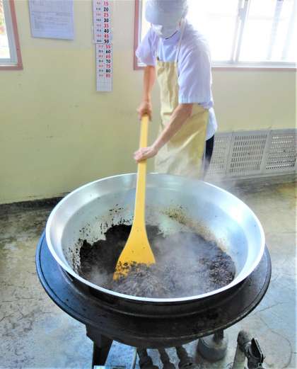 給食には、「しょうが」を使った牛ひじきそぼろと、「しそ」を使った牛ひじきそぼろが出ます。