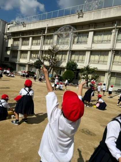 10月17日(火)3時間目に運動場で生活科の学習でしゃぼん玉遊びをしました。どうしたらたくさん飛ばせるのかや大きく飛ばせるのかを考えながら活動することができました。みんなしゃぼん玉に夢中になっていました。