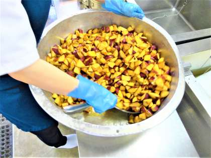 今日は、今が旬のさつまいもをカラッと揚げて蜜とからめた大学いもが出ました。