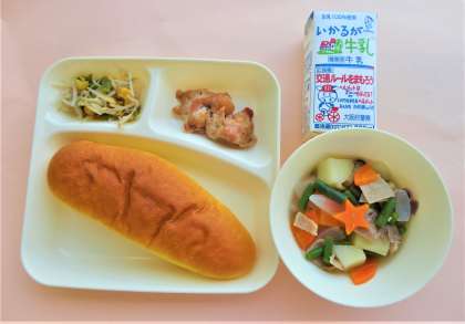 給食のパンはふわふわでやわらかく、いつも大人気です。
