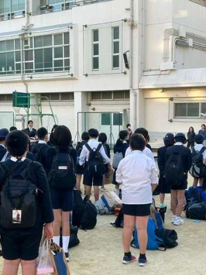 無事みんな元気に豊崎本庄小学校に帰ってきました。