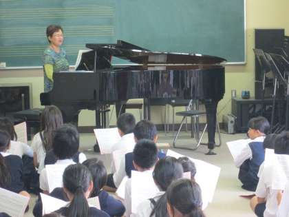 11月7日 140周年を祝う会が近づいてきました。プログラムの中で児童がお祝いの歌として「世界がひとつになるまで」を合唱する予定です。写真は6年生の練習風景です。どの学年も一生懸命取り組んでいるので、当日がとても楽しみです。