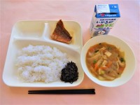 黒糖パン・牛乳・ツナポテトオムレツ・スープ・かき(富有柿)