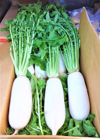 田辺だいこんは、根の全体が真っ白で下の方が丸い円筒形をしているのが特徴です。