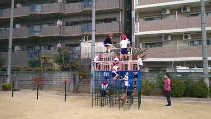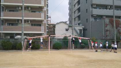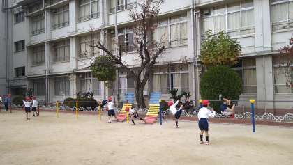 陽射しがあり、比較的暖かい気候でしたが、風が吹くとやはり冬の寒さを感じる1日でした。しかし、1年生は元気いっぱいです。体育の学習の始めの、「登り棒」「うんてい」「ジャングルジム」「鉄棒」を順に回るサーキットトレーニングでは、寒さに負けず体をめいっぱい動かしています。体力をつけながら体もポカポカに温まっていたようです。