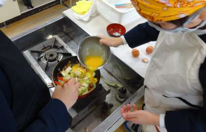 6年生は「まかせてね 今日の食事」のめあてで調理実習をしました。
