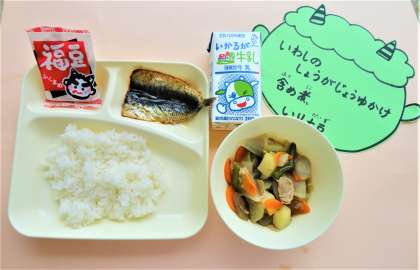 ご飯・牛乳・いわしのしょうがじょうゆかけ・含め煮・いり大豆